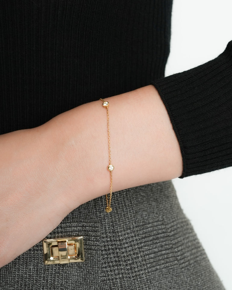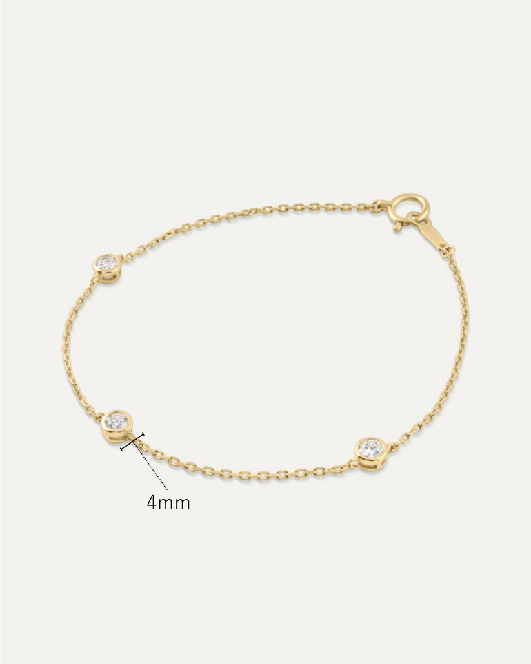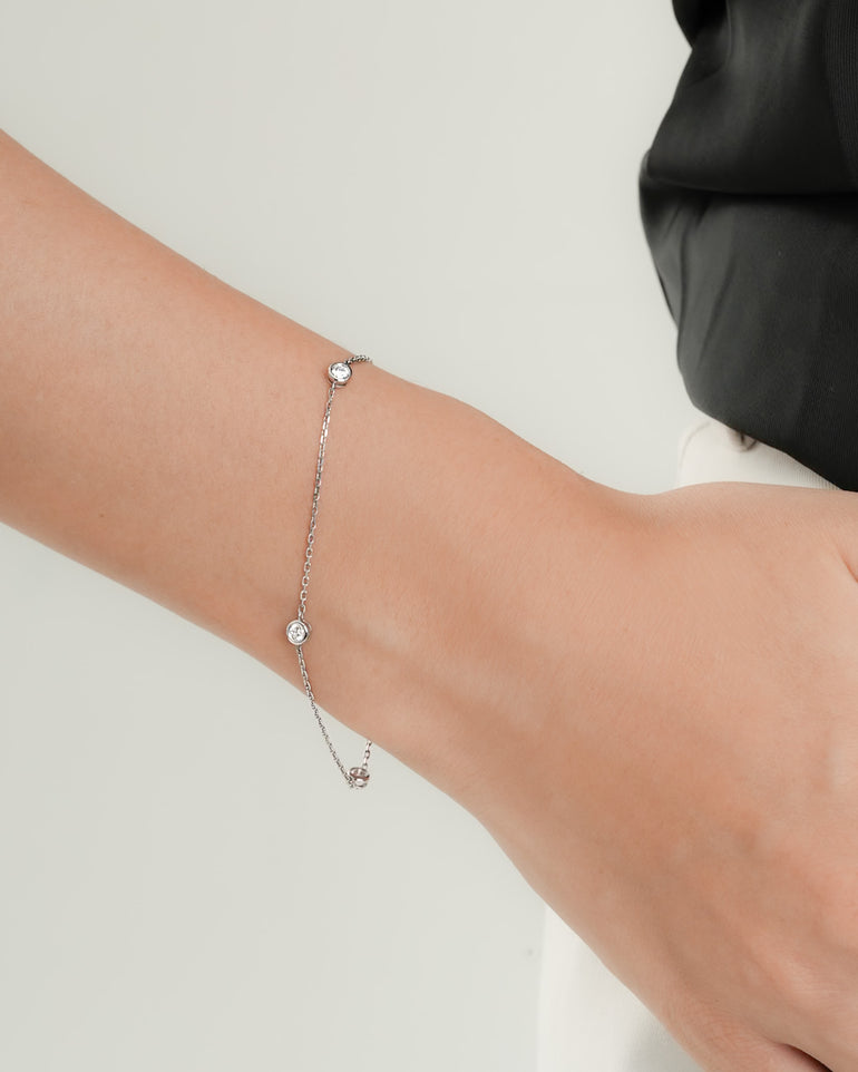 0.1ctのダイヤモンドが3粒あしらわれた存在感のあるブレスレット。