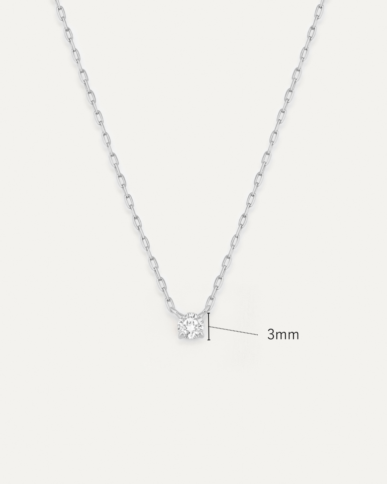 ダイヤモンドを4本爪で留めた、シンプルを追求したネックレス。サイドからも光を取り込むデザインにこだわり、思わず目を奪われるほどの輝きです。