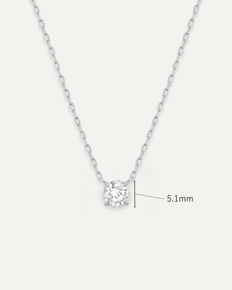 0.5ctのダイヤモンドを4本爪で留めた、シンプルを追求したネックレス。サイドからも光を取り込むデザインにこだわり、思わず目を奪われるほどの輝きです。