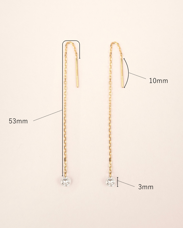 0.1カラットのダイヤモンドが揺れるチェーンピアス。