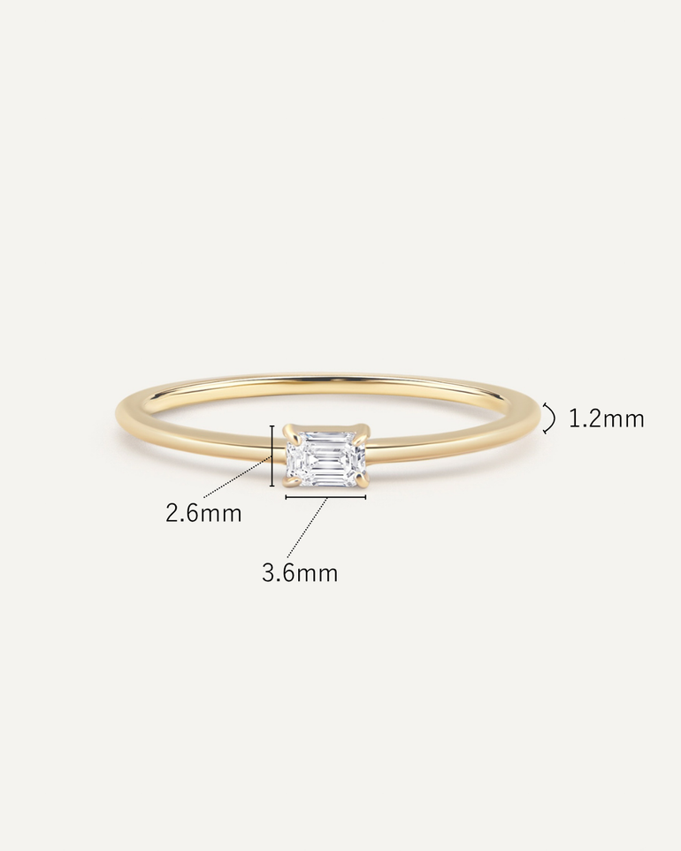 エメラルドカットのダイヤモンドはスタイリッシュな印象。
