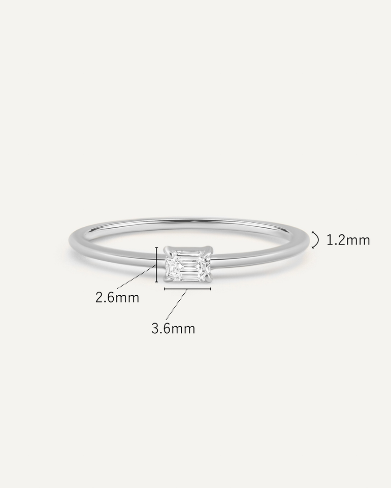 エメラルドカットのダイヤモンドはスタイリッシュな印象。