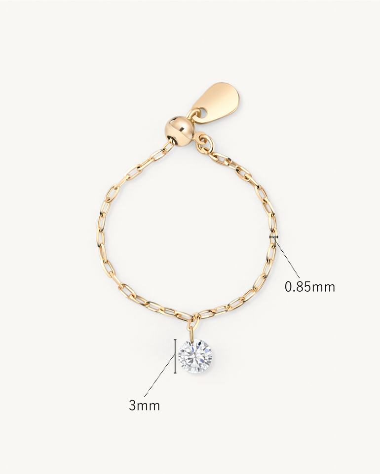 0.1カラットのダイヤモンドが揺れるチェーンリング。