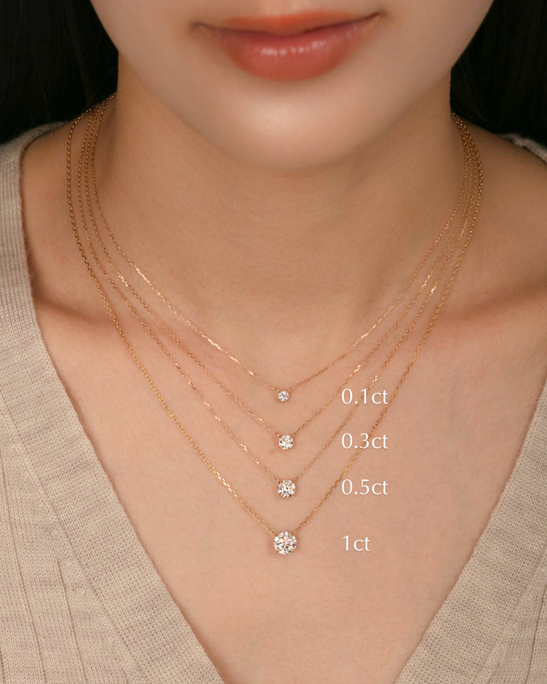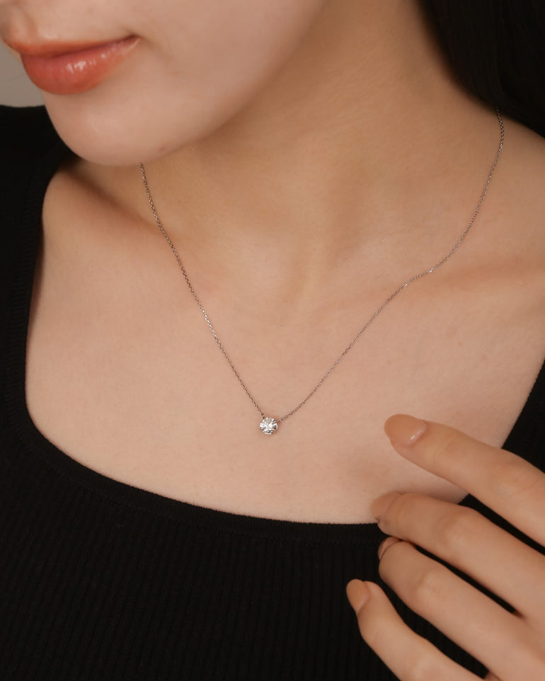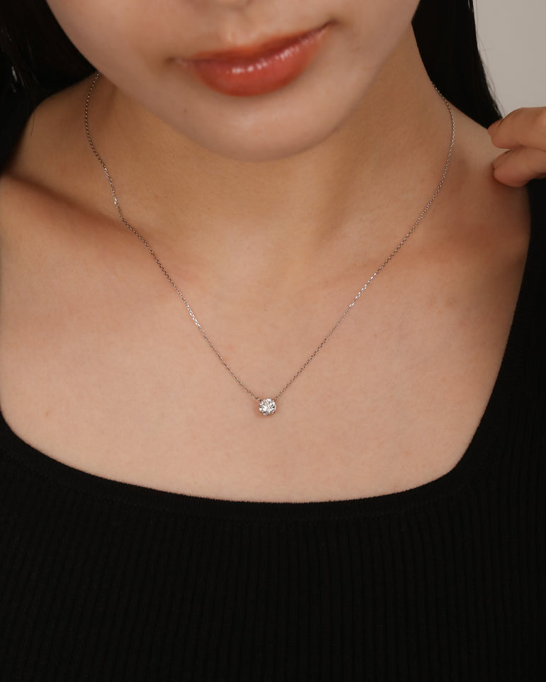 0.5ctのダイヤモンドを4本爪で留めた、シンプルを追求したネックレス。サイドからも光を取り込むデザインにこだわり、思わず目を奪われるほどの輝きです。