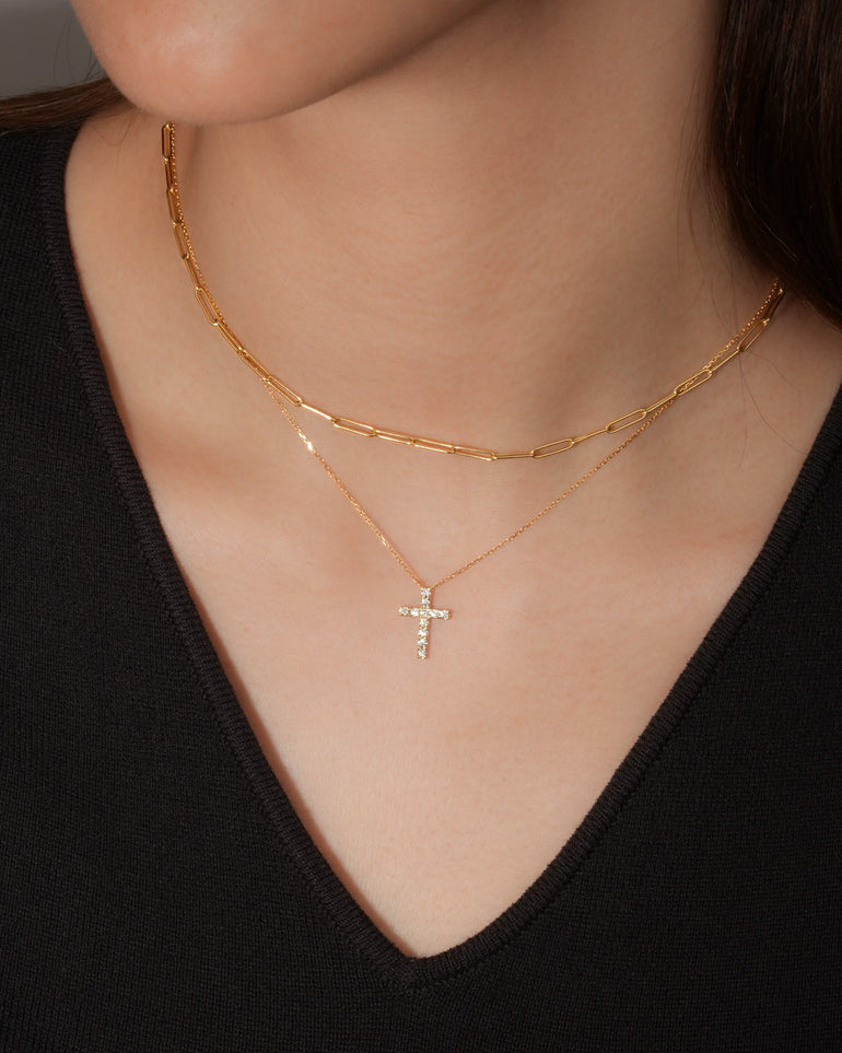 定番のクロスモチーフをモダンで洗練された印象に仕上げたネックレス。