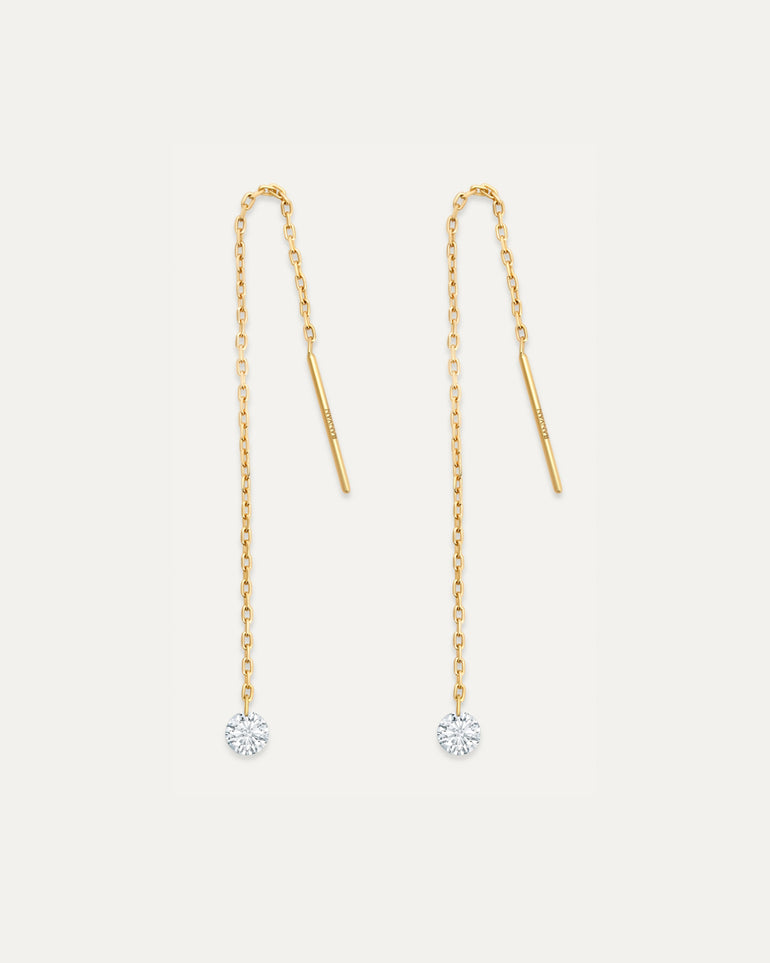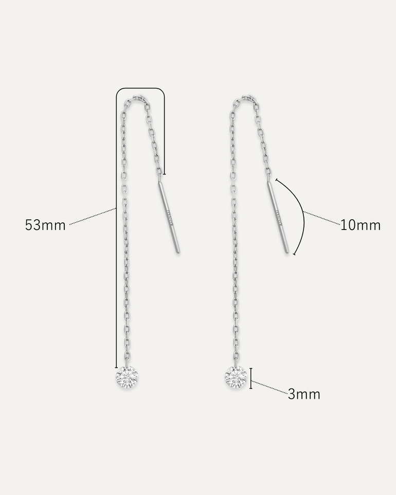 0.1カラットのダイヤモンドが揺れるチェーンピアス。