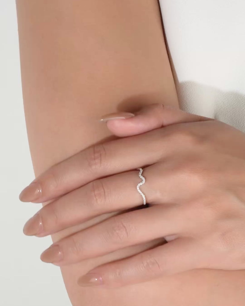 緩やかに揺れる小さなウェーブが、ダイヤモンドの輝きを軽やかに引き立てます。