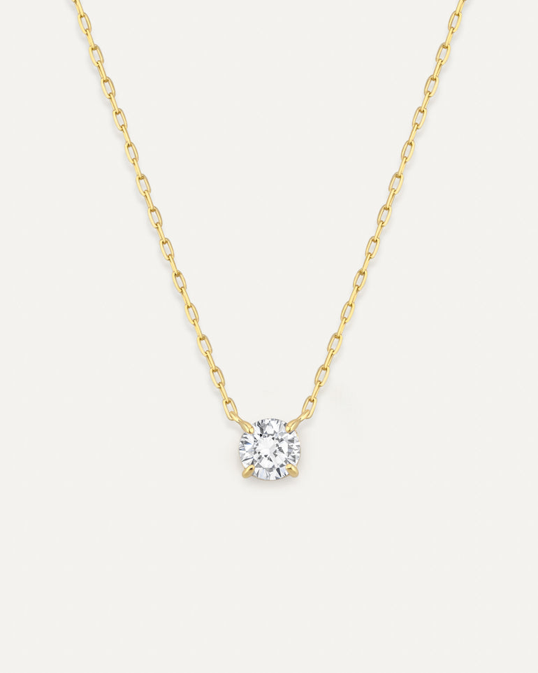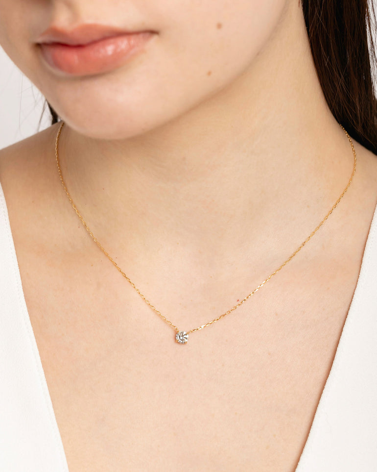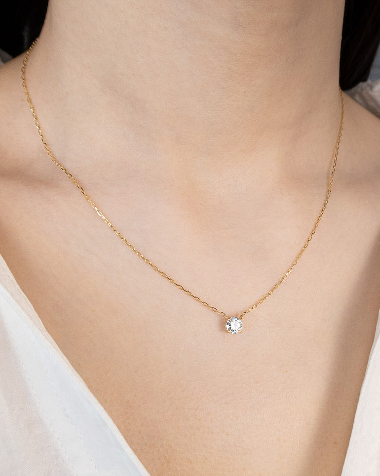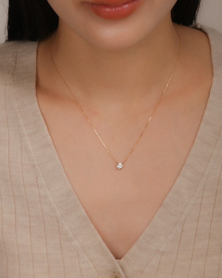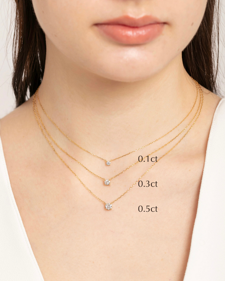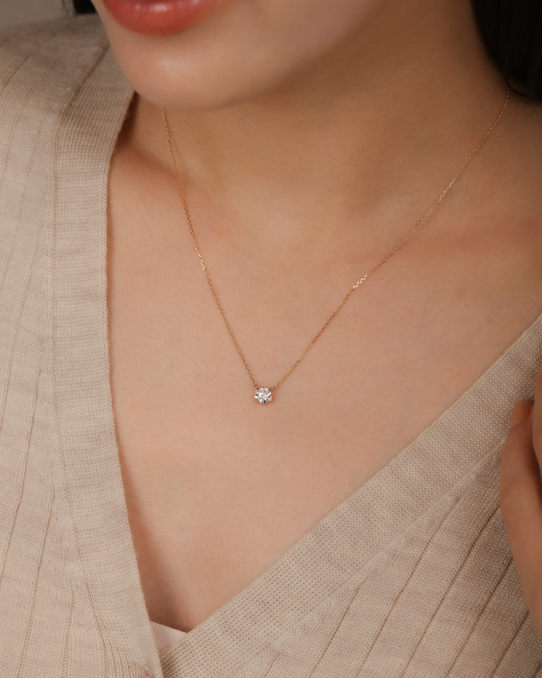 0.5ctのダイヤモンドを4本爪で留めた、シンプルを追求したネックレス。サイドからも光を取り込むデザインにこだわり、思わず目を奪われるほどの輝きです。