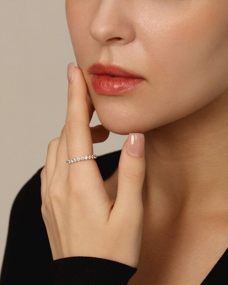合計約1.3〜1.5ctのダイヤモンドを使用した、贅沢な王道フルエタニティリング。
