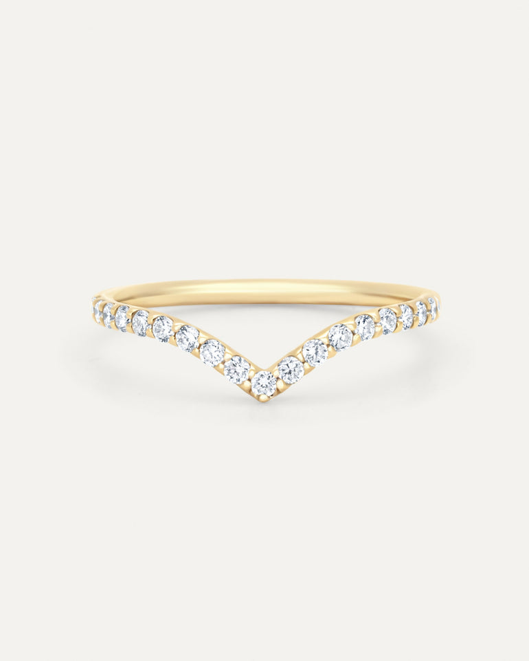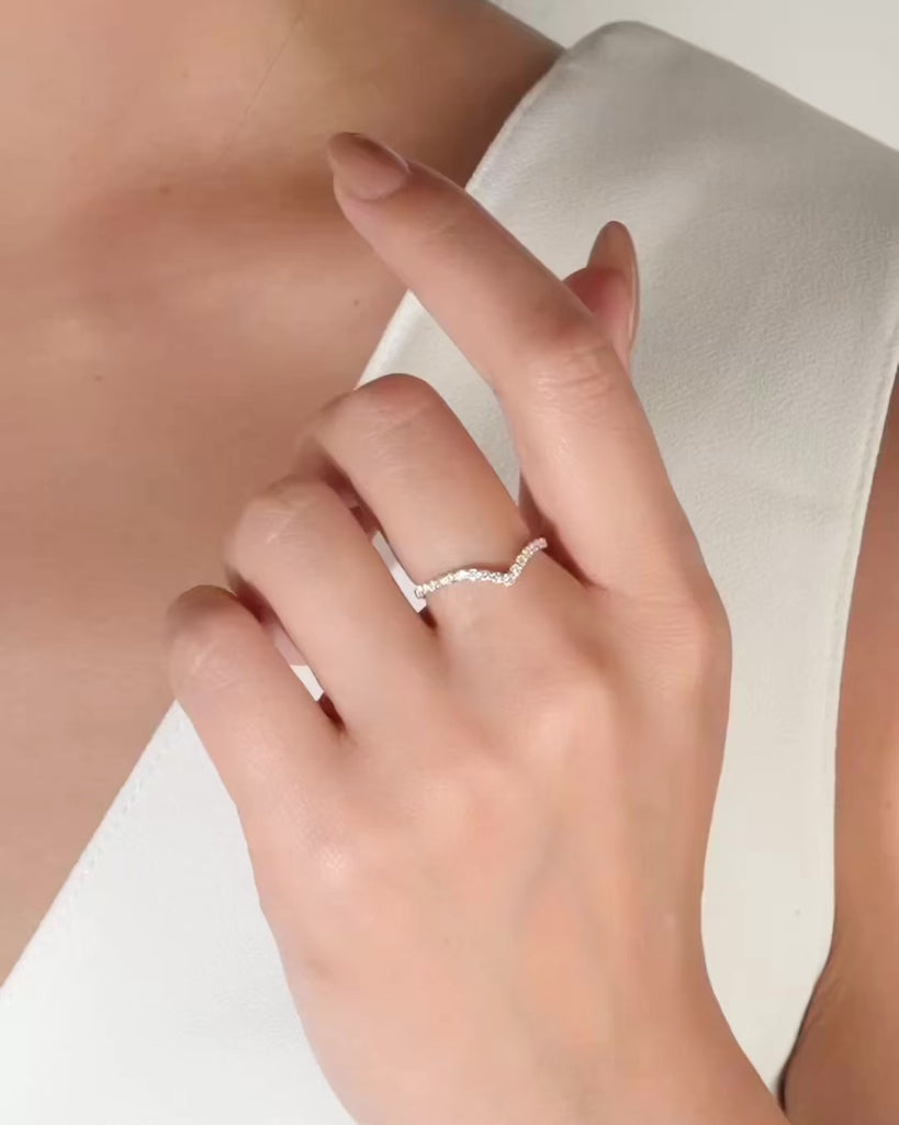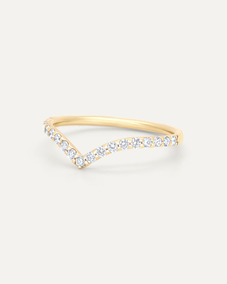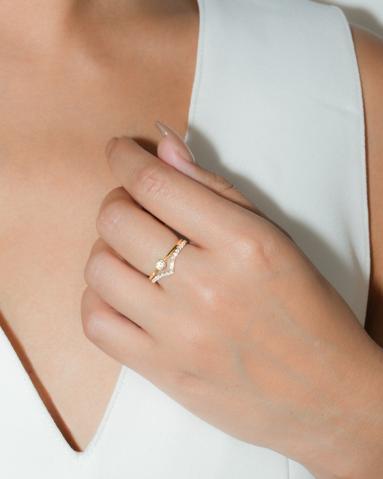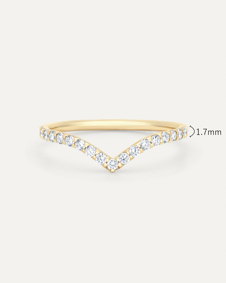 V字ラインが指先を美しく見せる、繊細なダイヤモンドリング。
