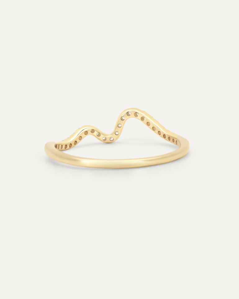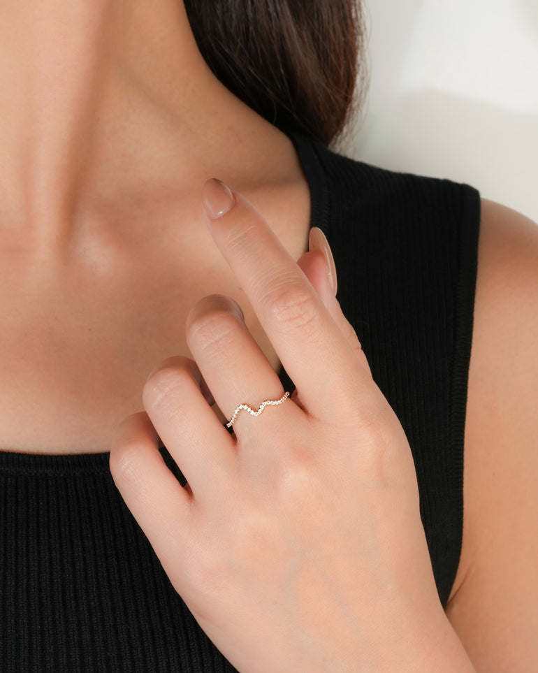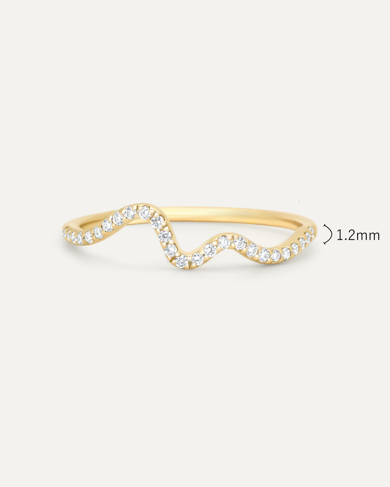 緩やかに揺れる小さなウェーブが、ダイヤモンドの輝きを軽やかに引き立てます。
